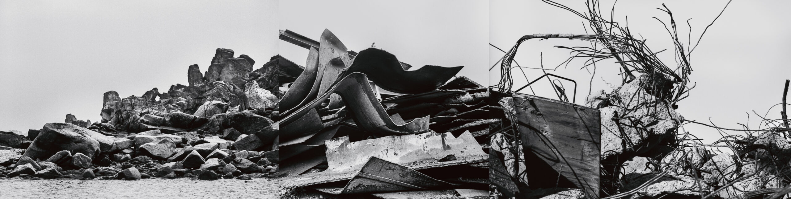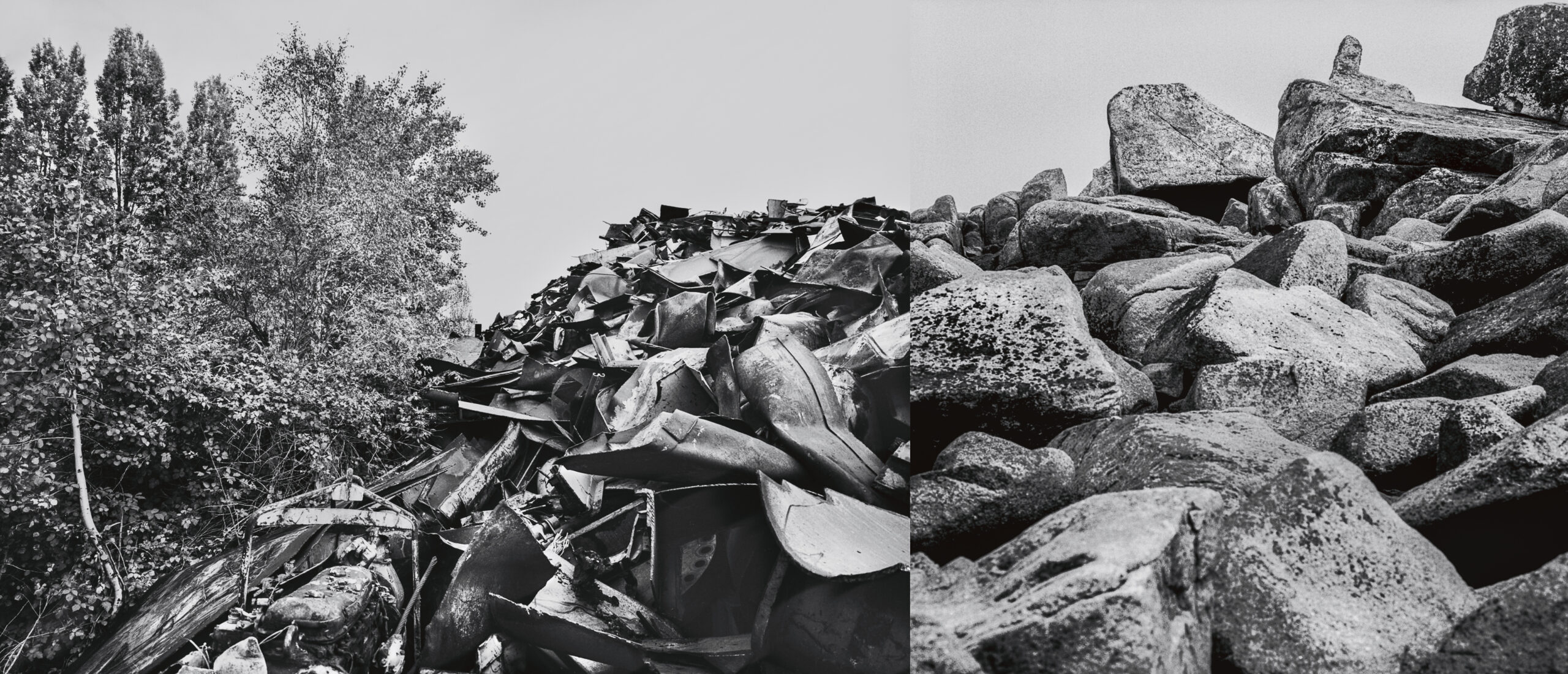 Having photographed matters (water, earth, stone, wood, metal) in nature and in the city, with the idea in mind that their juxtaposition would underline the complexity of our control over them, I realized that natural materials sculpted by our hands and our machines, retained a deep « identity », an unbroken link with nature regardless of our intervention … Is it because we question so much the value of our existence that we mark our territories so powerfully, while we praise nature as a life source? A bond of friendship governs the totality of the visible and unperceptible, in spite of the implacable control our world strives on, out of necessity, distraction, or simple blindness.