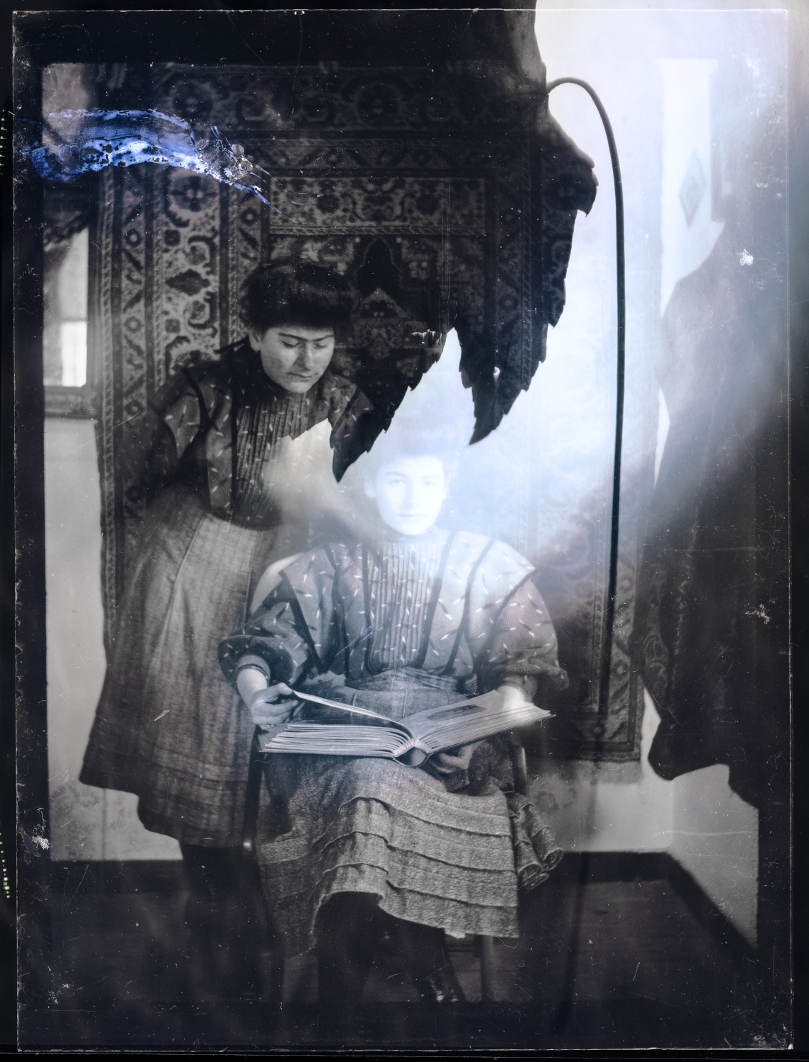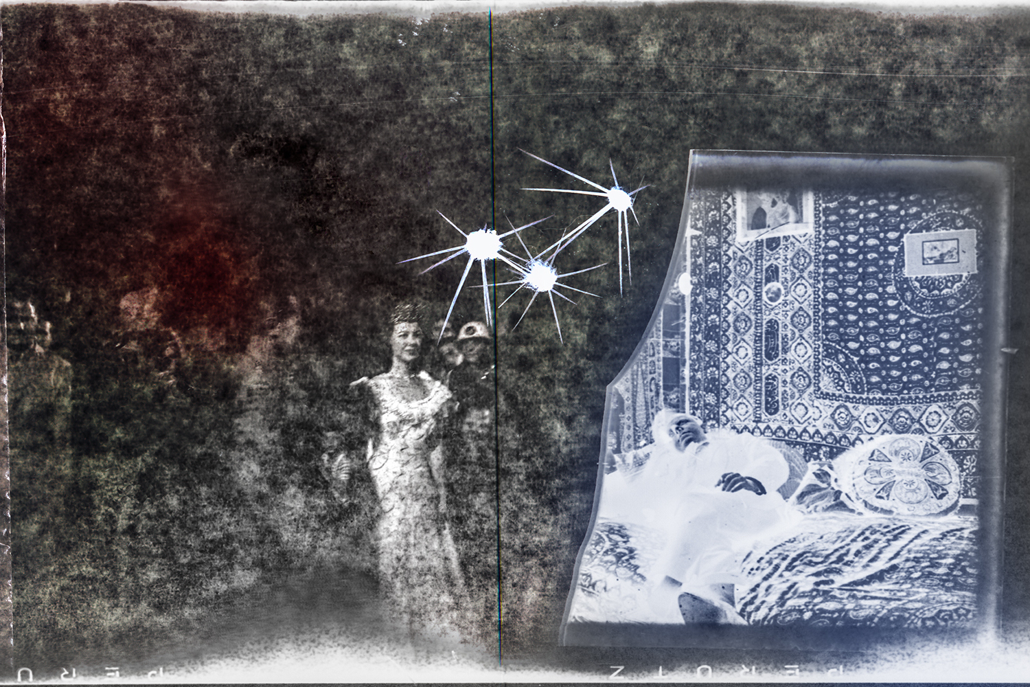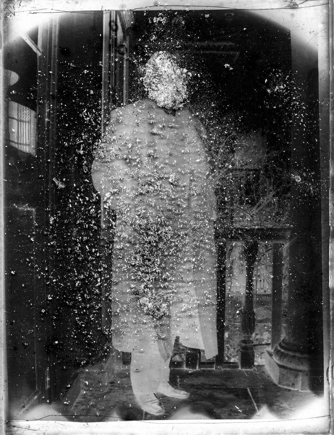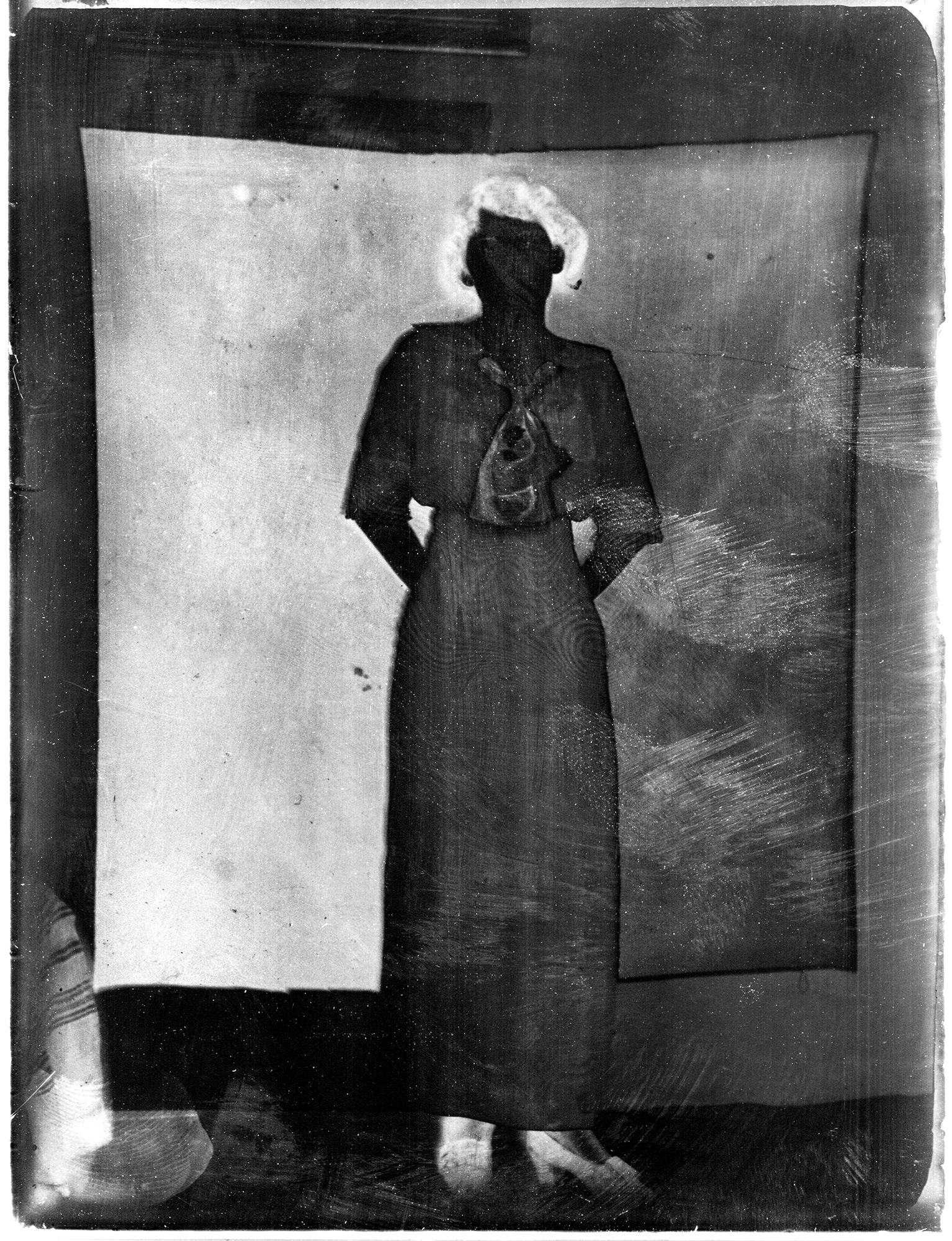 Pour ce faire j’utilise d’une part les photographies réalisées sur plaque de verre et sur anciens négatifs par des membres de ma famille entre 1910 et 1940, et compose de nouvelles images comportant certains de mes photographies produites au fil du temps, ainsi que des objets tridimensionnels que j’enregistre avec un scanner. Par ce processus je conserve et met au jour le lien entre les époques et les éléments.